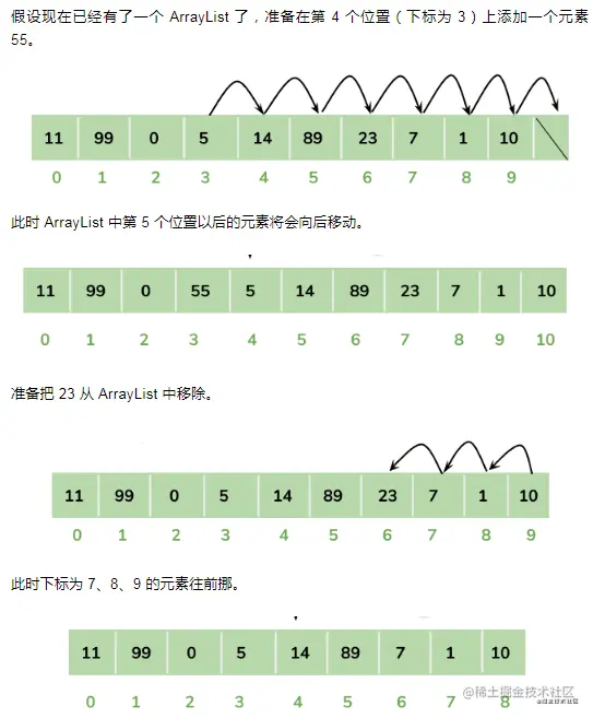 数组这种数据结构最大的好处,就是可以根据下标(或者叫索引)进行操作,插入的时候可以根据下标直接插入到具体的位置,但与此同时,后面的元素就需要全部向后移动,需要移动的数据越多,就越累。