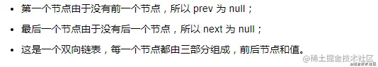 链表在物理存储空间是不连续的,但每个节点要么知道它的下一个节点是谁,要么知道它的上一个节点是谁,仿佛就像我们之间隔着千山万水,却心有灵犀一点链。像 LinkedList 就是最典型的链表结构,通过引用相互链接。 LinkedList 中的每一个元素都可以称之为节点(Node),每一个节点都包含三个项目:其一是元素本身,其二是指向下一个元素的引用地址,其三是指向上一个元素的引用地址。 LinkedList 看起来就像下面这个样子: