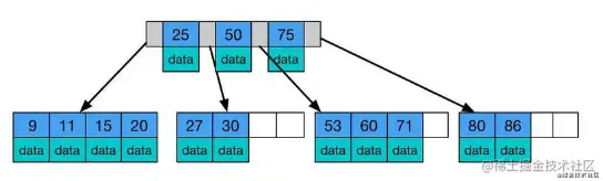 4、B 树:一种对读写操作进行优化的自平衡的二叉查找树,能够保持数据有序,拥有多于两个的子树。