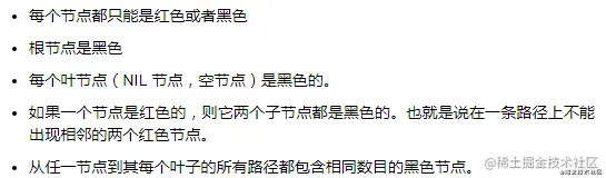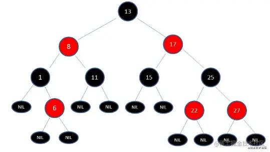 3.1、平衡二叉树:当且仅当任何节点的两棵子树的高度差不大于 1 的二叉树。由前苏联的数学家 Adelse-Velskil 和 Landis 在 1962 年提出的高度平衡的二叉树,根据科学家的英文名也称为 AVL 树。 平衡二叉树本质上也是一颗二叉查找树,不过为了限制左右子树的高度差,避免出现倾斜树等偏向于线性结构演化的情况,所以对二叉搜索树中每个节点的左右子树作了限制,左右子树的高度差称之为平衡因子,树中每个节点的平衡因子绝对值不大于 1。 平衡二叉树的难点在于,当删除或者增加节点的情况下,如何通过左旋或者右旋的方式来保持左右平衡。 红黑树是一种常见的平衡二叉树,节点是红色或者黑色,通过颜色的约束来维持着二叉树的平衡: