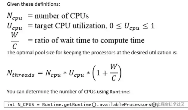 线程数=Ncpu/(1-阻塞系数):其中计算密集型阻塞系数为0,IO密集型阻塞系数接近1: