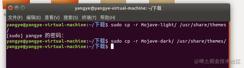 sudo cp -r Mojave-dark/ /usr/share/themes/