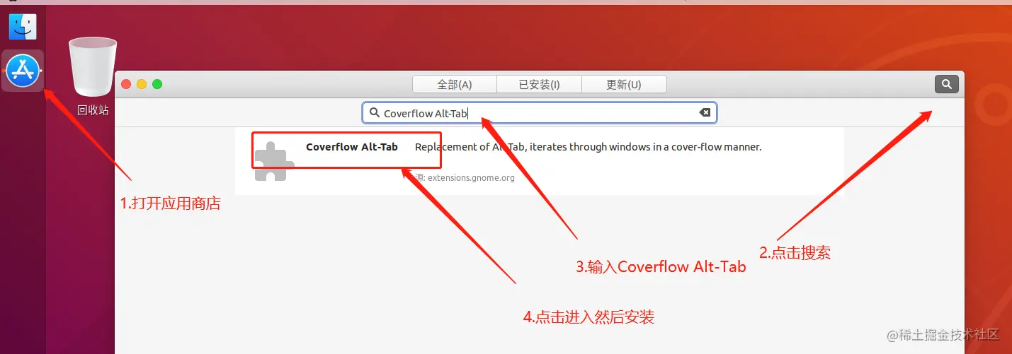 打开应用商店 > 搜索 Dash to Dock> 安装