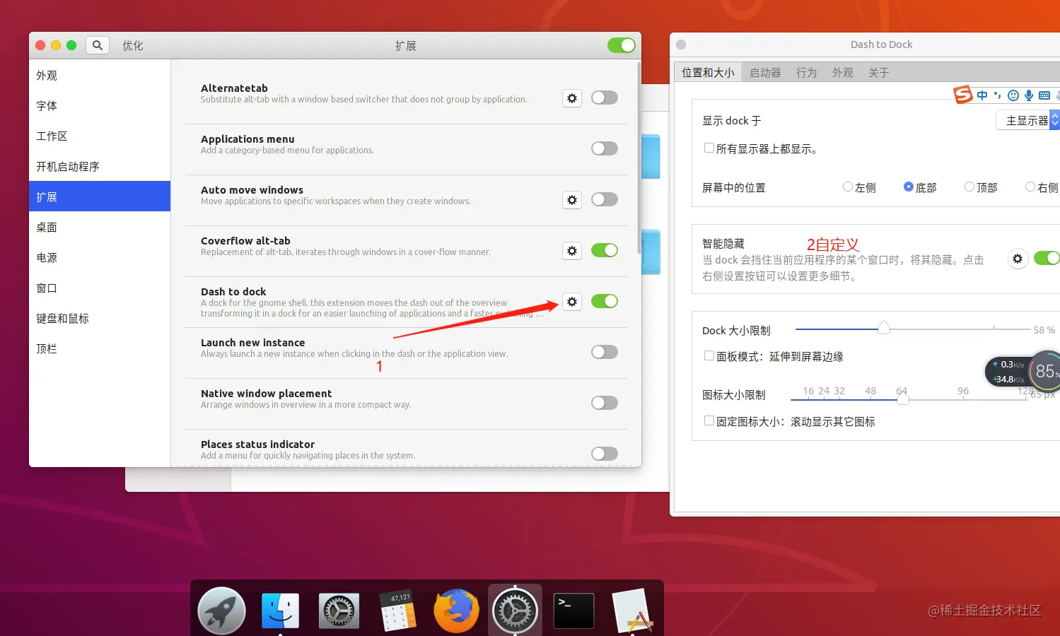安装Dash to Dock