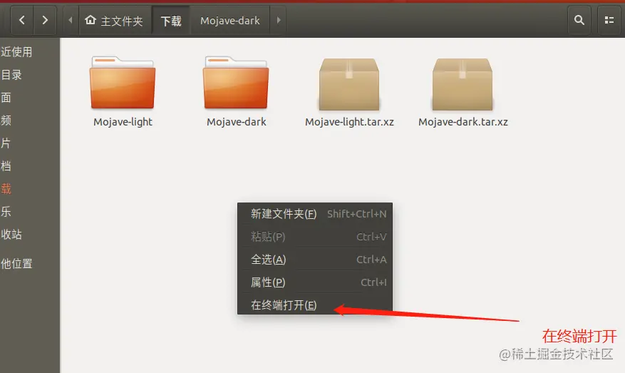 在解压的主题所在目录 右键 > 在终端打开