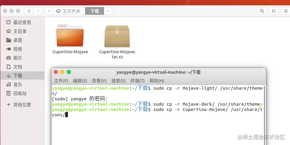 sudo cp -r Cupertino-Mojave/ /usr/share/icons/