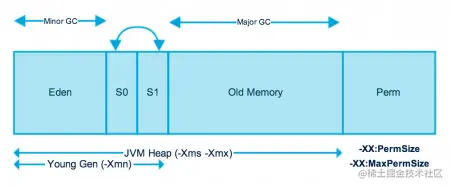 - 元空间(图中的Perm区):JDK1.8以前不叫元空间,叫永久代,不管是元空间还是永久代,都可以看作是JVM规范中方法区的实现。方法区有个别名叫非堆(Non-Heap),目的应该是与 Java 堆区分开