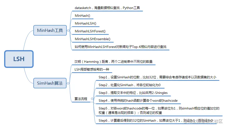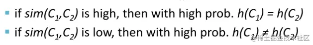 原来文档的Jaccard相似度低,那么它们的hash值不相同的概率高。针对Jaccard相似度的为MinHashing(最小哈希)
