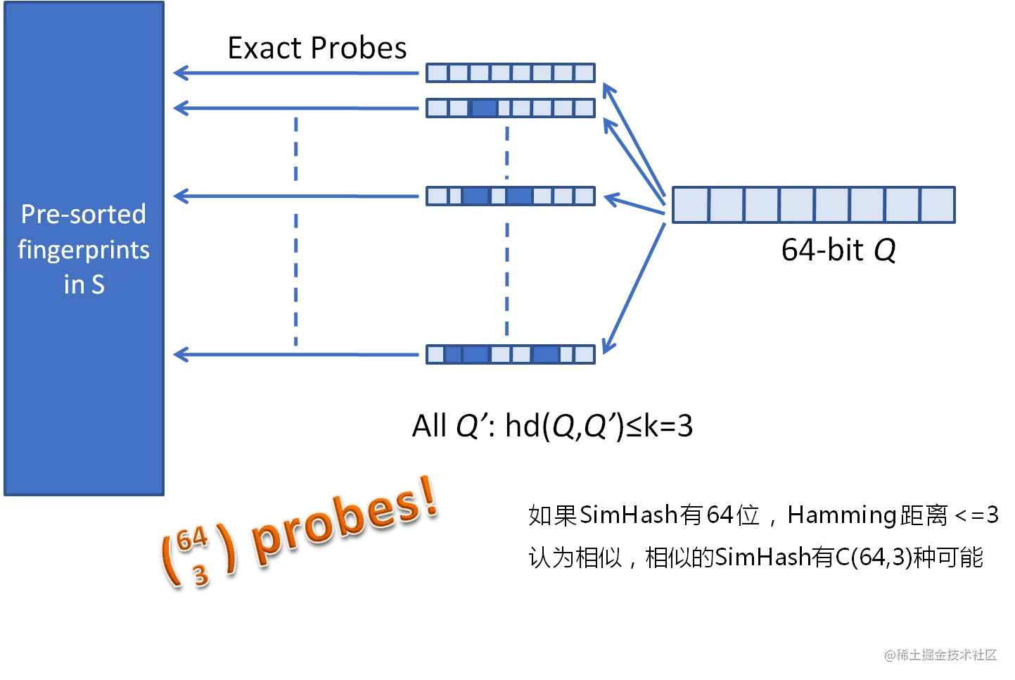 通常2篇文档的Hamming距离在3以内,就认为相似度比较高 => 两篇文档基本相同