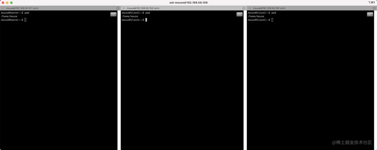 我们后续的命令默认都是操作三个节点,如果需要只在一个节点执行的命令,会单独说明