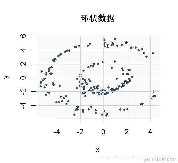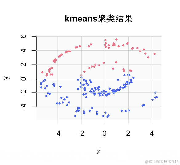 环数据在代码中是对象dat。下面的几行只是简单地生成K-means解决方案,并将其绘制出来。