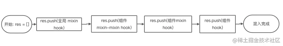 hook 的混入,相对 data 的混入来说,要简单一些,就是把所有的钩子函数保存进数组,虽然顺序执行。