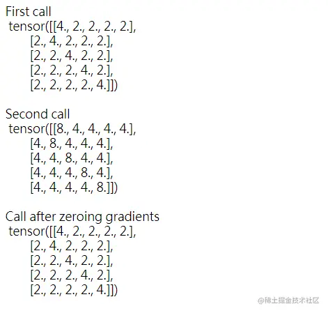 当backward使用相同的参数进行第二次调用时,梯度的值是不同的。发生这种情况是因为在进行反向传播时,PyTorch会积累梯度,即将梯度的值添加到grad图计算中所有节点的属性中。如果要计算适当的梯度,需要将grad归零。