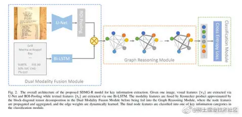 在文档图像中提取关键信息在办公自动化应用中至关重要,比如常见的存档文件、收据小票、信用表单等数据场景快速自动化归档、合规性检查等等。传统基于模板匹配或者规则的方法,主要利用的固定版式模板数据的布局、位置坐标信息、内容规则等,这些信息局限性很强,因此在通用性方面、未见过版式模板数据方面,效果都不好。为此,本文提出了一种端到端的空间多模态图推理模型(SDMG-R),能充分利用检测文本区域的位置布局、语义、视觉信息,相比之前获取的信息的更充分丰富,因此能有效的从未见过的模板数据中提取关键信息,并且通用性更好。