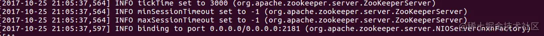 cd进入kafka解压目录,输入bin/zookeeper-server-start.sh config/zookeeper.properties启动zookeeper成功后会看到如下的输出。