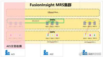 备份方案虽然可以解决数据可靠性的问题,但无法解决业务可靠性的问题,如果发生机房机的故障,虽然数据可以从备份系统中恢复,但这时的恢复周期会非常长,针对机房级的故障,如何同时解决业务和数据的可靠性,MRS 提供了单集群跨 AZ 的方案,此方案的核心是利用大数据的分布式能力,将一个 MRS 集群部署到多个 AZ 中,对于存储层的 HDFS,自动识别多 AZ,并将多副本分布在多 AZ 中,确保任一 AZ 故障,都不会导致数据丢失。对于计算层,支持同一个队列跨 AZ 部署,并在一个 AZ 故障时,自动将任务在另一个 AZ 中重试,实现应用层无感知的 AZ 迁移。
