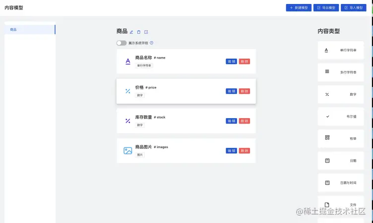 使用上面的内容管理系统,我们既可以方便管理内容模型(注意内容模型的名字不要随便改,不然内容那块会出问题,所以起名字要慎重),还可以创建内容。
