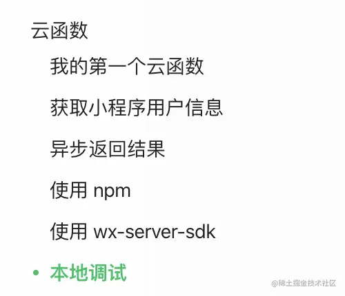 接下来,我们可以按照云函数的文档,一直看到本地调试。
