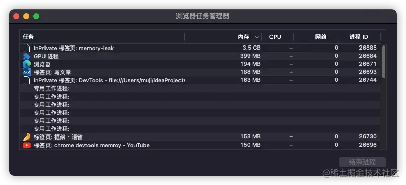 图 4 chrome 的任务管理器