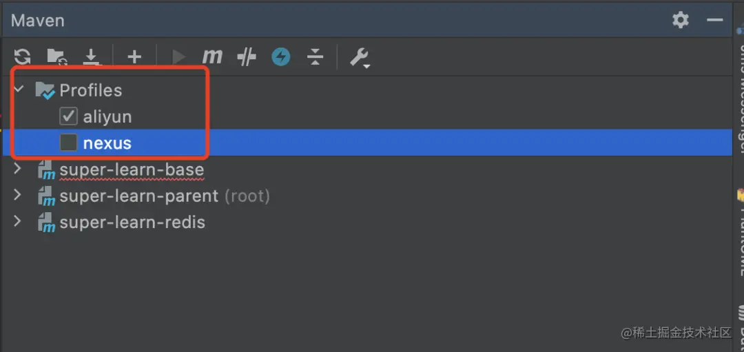 正常maven 的settings.xml配置完成profiles之后,可以在idea中进行切换