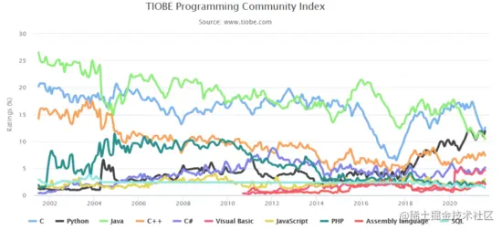 汇编语言相比2020年,也更受欢迎,从去年的排名第14进入排名第9了。
