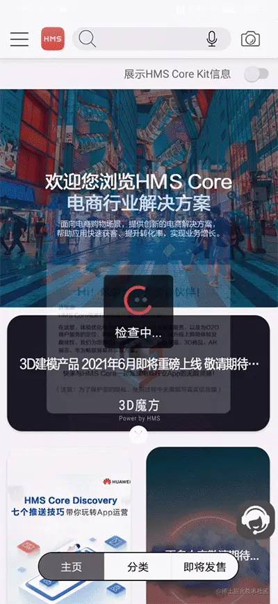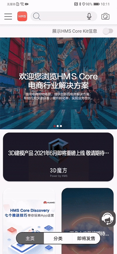 首页点击客服助手图标,即可体验Search Kit智慧助手服务,为电商开发者提供智能客服前端、云端API、云端存储与处理等服务,节省人力成本的同时给用户更加智能的客服体验,热点问题、交互问答、语音助手等功能一应俱全。