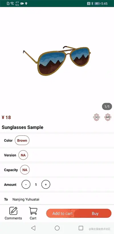 图形引擎服务助力电商开发者在App中展示商品的高品质3D模型,为用户带来更吸引人的商品展示视觉体验。更有AR Engine融合虚拟与现实,实现线上试穿试戴商品,打造身临其境的购物体验感,增强线上购物趣味性,提升用户购买转化率。