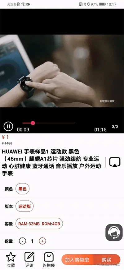 在商品详情页中,还使用了视频服务,支持低卡顿、高清晰度、无缝切换的视频播放,让用户畅享稳定高清的视频,在更具场景化和真实性的视频体验中全面了解商品。