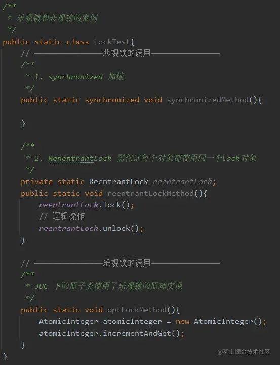 - 通过调用方式示例,可以发现悲观锁基本都是在显式的锁定之后再操作同步资源,而乐观锁则直接去操作同步资源。