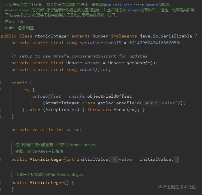 AtomicInteger的定义:- 根据定义我们可以看出各属性的作用: