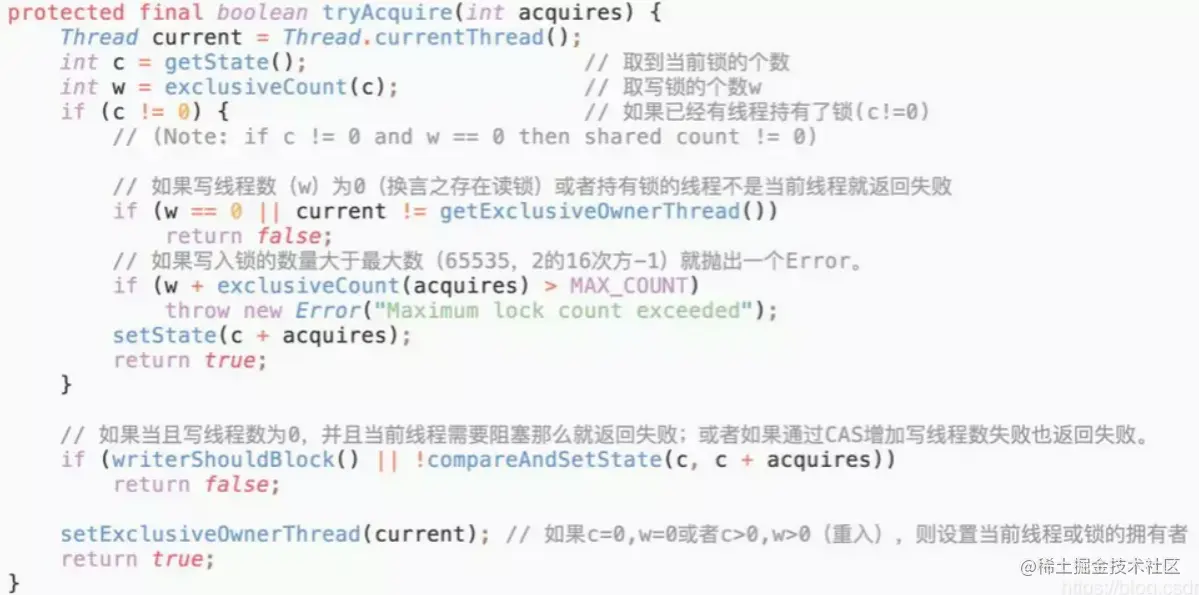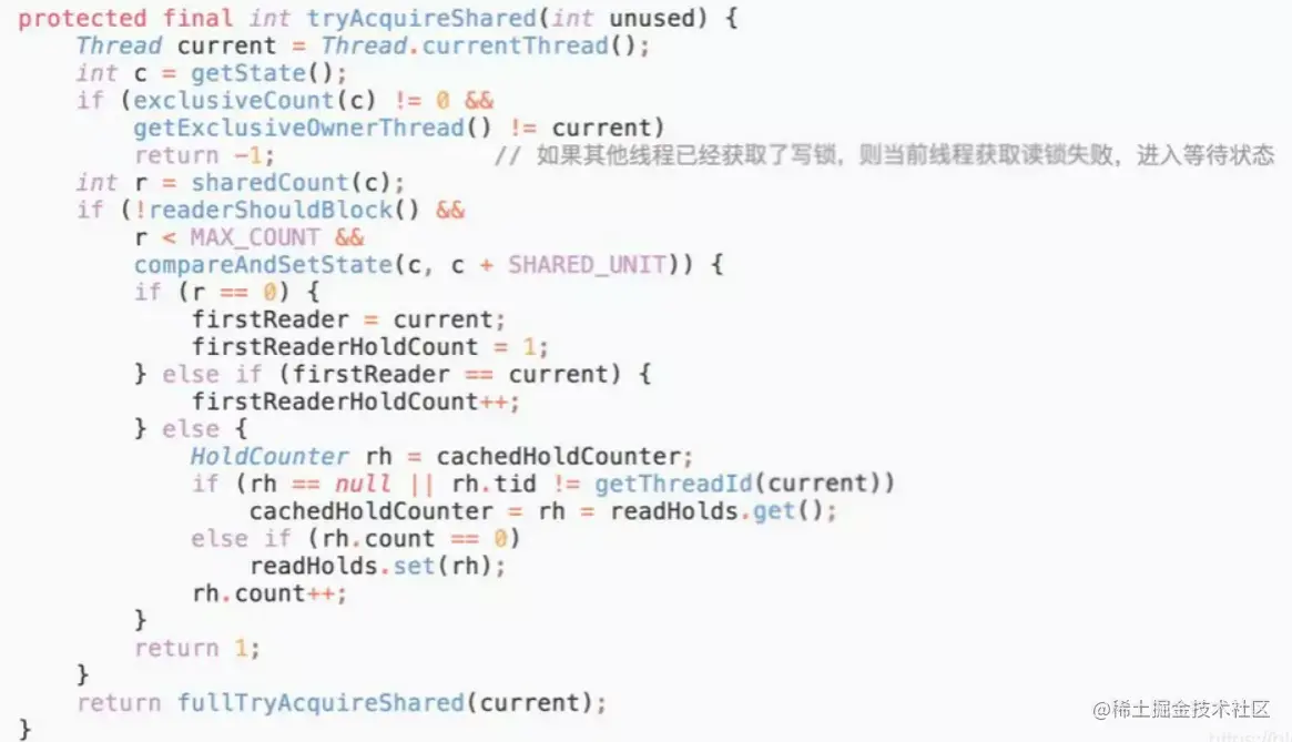 - 但是,一旦「写锁」被线程持有后,读线程的获取读锁的操作会被阻塞,而且其他写线程的获取写锁的操作也会被阻塞。