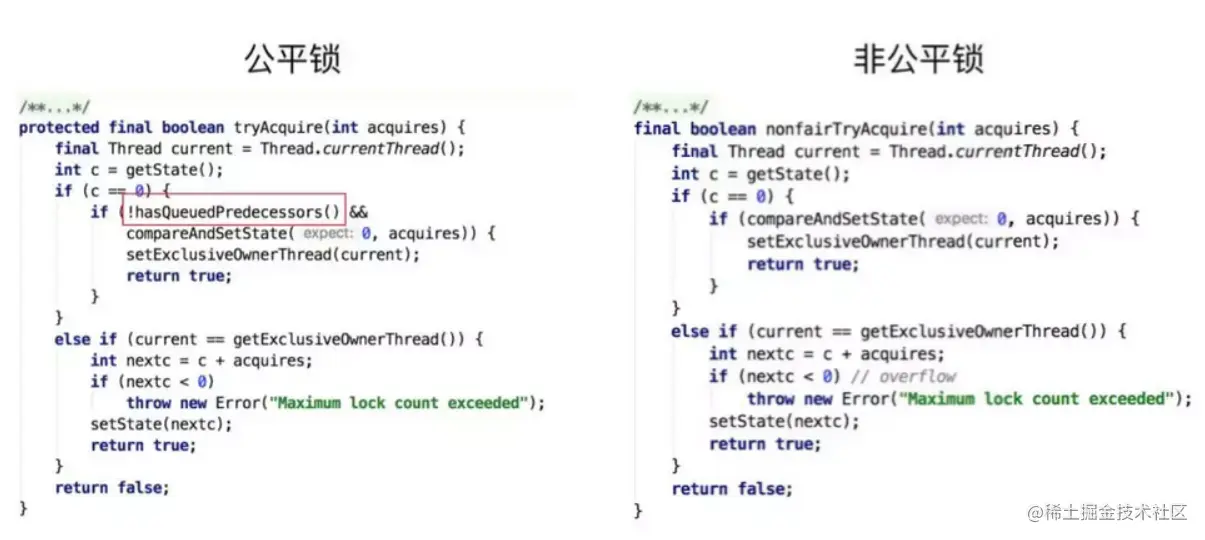 - 在Java中,尝试获取锁的线程不会立即阻塞,而是采用循环的方式去尝试获取锁,这样的好处是减少线程上下文切换的消耗,缺点是循环会消耗CPU性能。