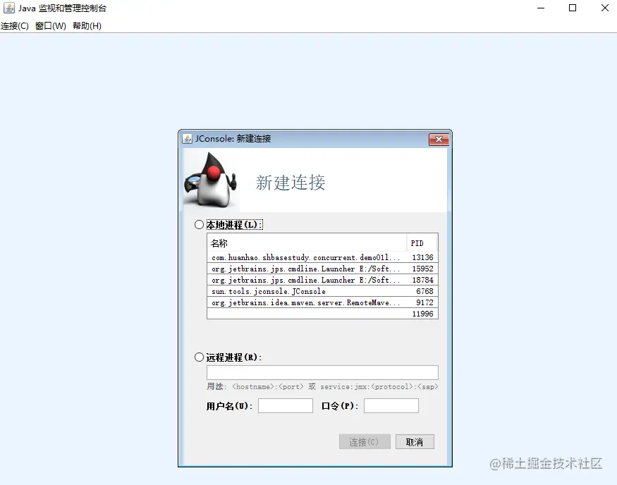 jconsole,运行工具- 选择项目运行的进程连接