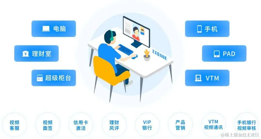 金融行业的线上化转型近年来也是发展迅速,出现了远程银行、视频客服、金融双录等各种线上化的业务场景。为了解决线上线下业务办理“零差别”,内部协同运营更高效的问题,音视频厂商也在不断地创新技术并深入场景痛点,为金融行业发展持续赋能。