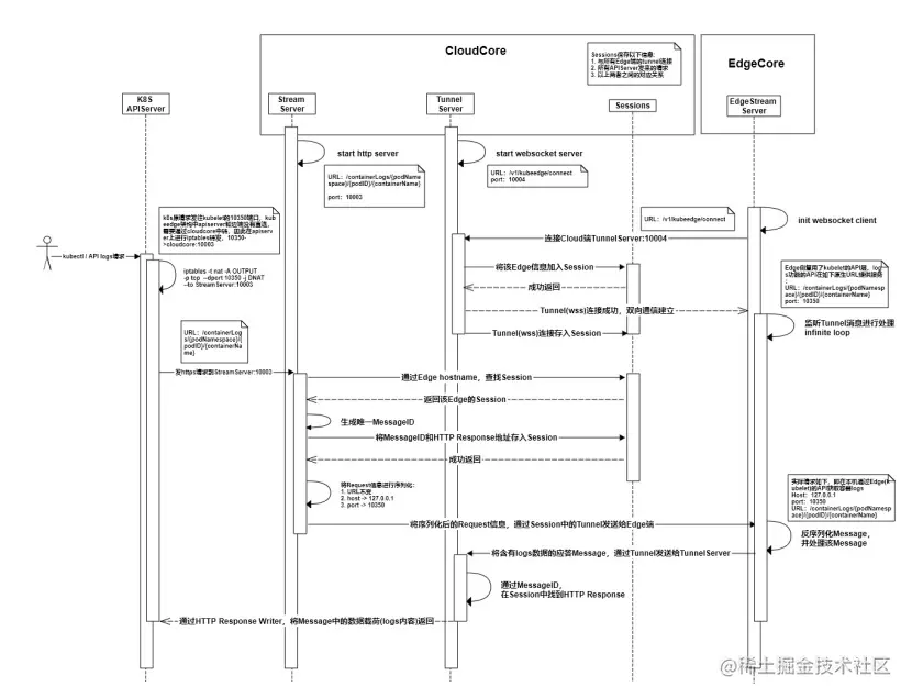 下图是在 KubeEdge 的边缘场景下,logs 功能的时序图,感兴趣的开发者可以进一步了解。