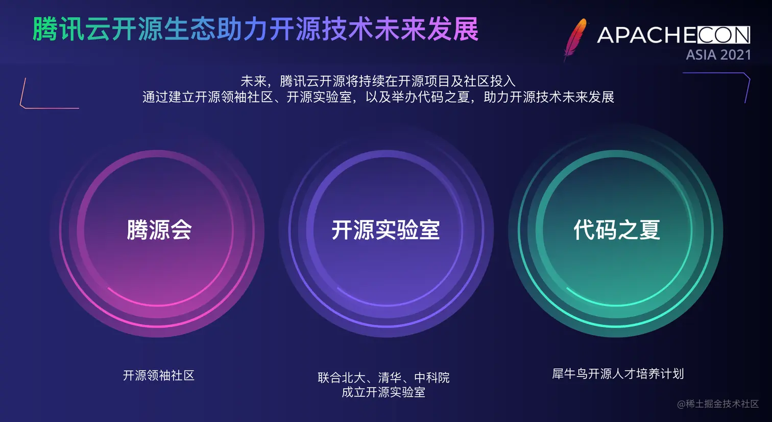 未来,腾讯希望通过“腾源会”这一中立性组织为开源交流和项目孵化搭建平台,通过开源孵化器、共创社区、开源研讨活动和实操类活动的举办,链接更多的开源项目,开源爱好者、实践者和领导者,以及全球的开源基金会、开源文化。