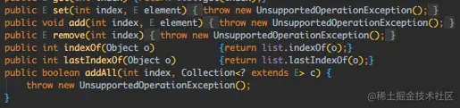 继承List,对修改元素的函数进行重写,抛出UnsupportedOperationException异常