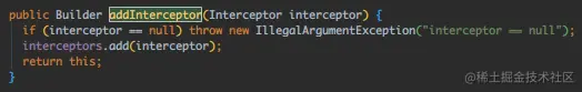接着通过 addInterceptor() 函数添加自定义拦截器,跟下: