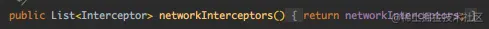 继续跟 networkInterceptors,定义了一个公共获取拦截器列表的方法: