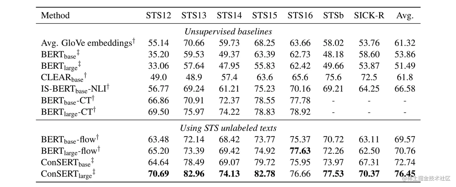 在无监督实验中,我们直接基于预训练的BERT在无标注的STS数据上进行Fine-Tune。结果显示,我们的方法在完全一致的设置下大幅度超过之前的SOTA—BERT-Flow,达到了8%的相对性能提升。