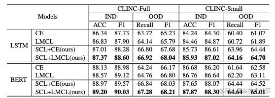 我们在两个公开的数据集上验证模型的效果,实验结果表明我们提出的方法可以有效的提升无监督异常意图检测的性能,如下表所示。