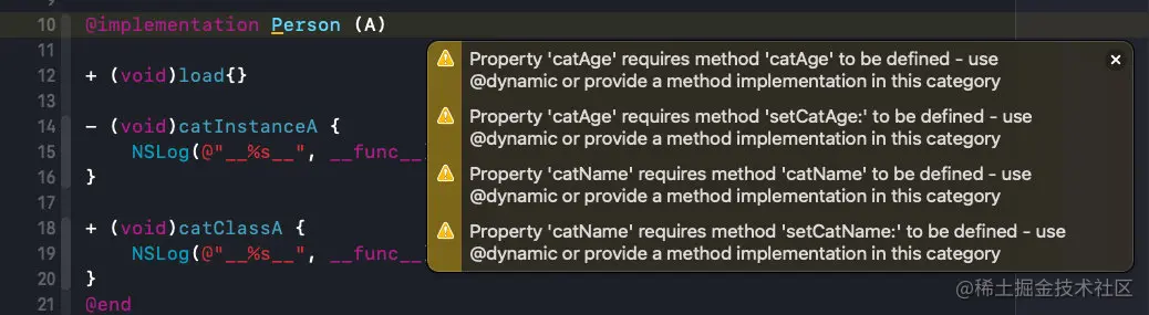 这个时候,我们发现,在分类的.m中惠有警告信息: