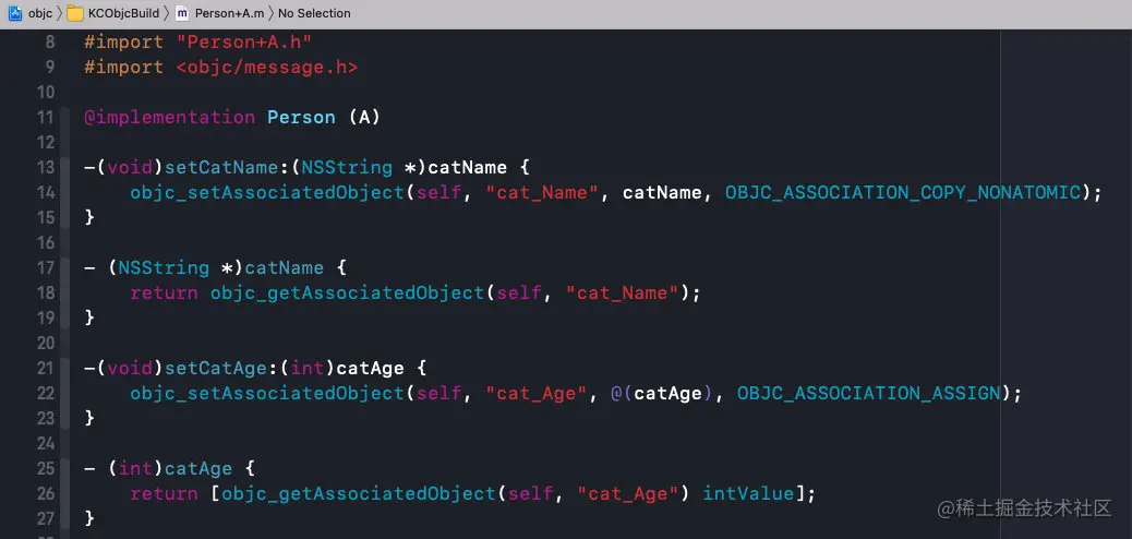 这是因为,在分类中默认是不能添加属性的,如果需要添加属性,就需要用到关联对象进行处理,手动添加setter和getter方法: