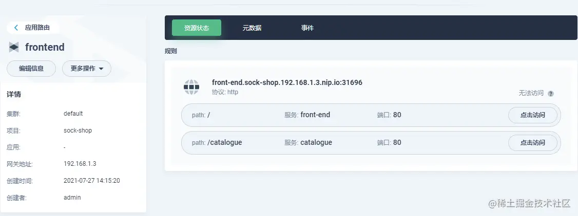 - 路由创建完成后,可以在应用路由列表页面点击