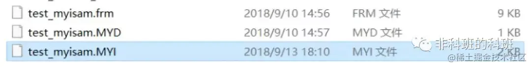 在MyISAM储存引擎中,数据和索引文件是分开储存的,Myisam 的存储文件有三个,后缀名分别是 .frm、.MYD、MYI,其中 .frm 是表的定义文件,.MYD 是数据文件,.MYI 是索引文件。