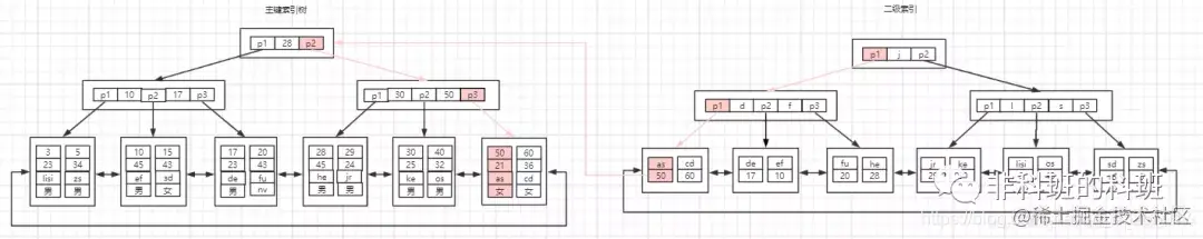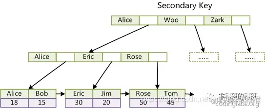 如果给另一个字段指定为普通索引,则普通索引树的结构如下图所示:
