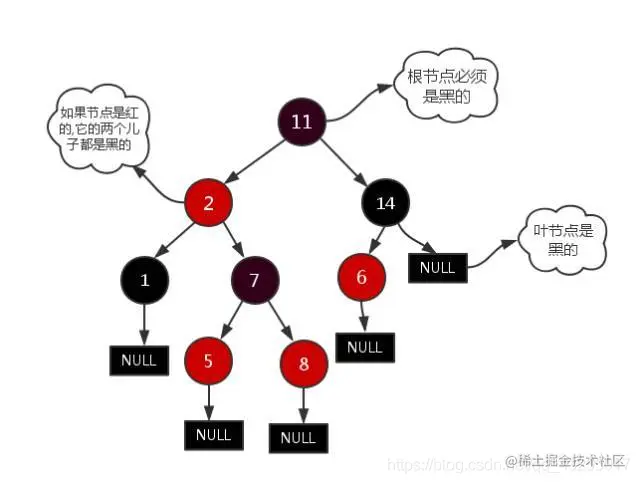 红黑树和AVL树是在二叉树的基础上机上加上平衡算法,红黑树确保没有一条路径会比其它路径长出两倍,它是弱平衡树而AVL是严格的平衡,所以相对于二叉树的蹩脚情况做了很大的改进,加入了平衡算法: