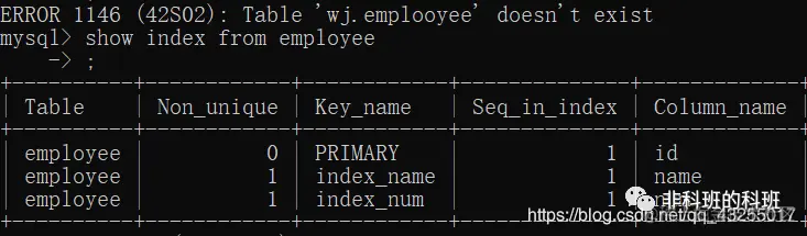 例如,查看我自己的测试表里面的索引,如下图所示,Key_name表示索引的名字,Column_name表示索引的字段:
