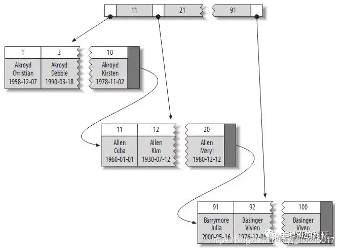 所以根据上面的查找只需要至多三次的磁盘IO就可以找到对应的数据。从上面的B+树的原理图中非叶子节点构成了类似于一个一个目录一样,也可以叫做索引页,最后找到叶子结点的数据。