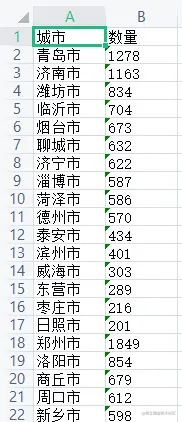 city = data['城市'].tolist()